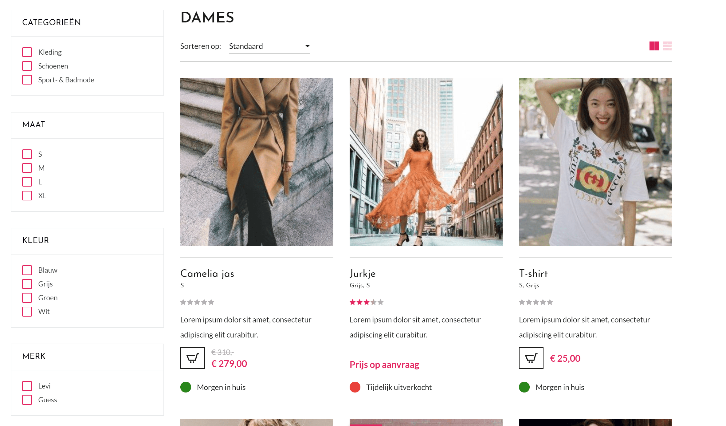 De filters staan altijd links en worden gegroepeerd weergegeven.
