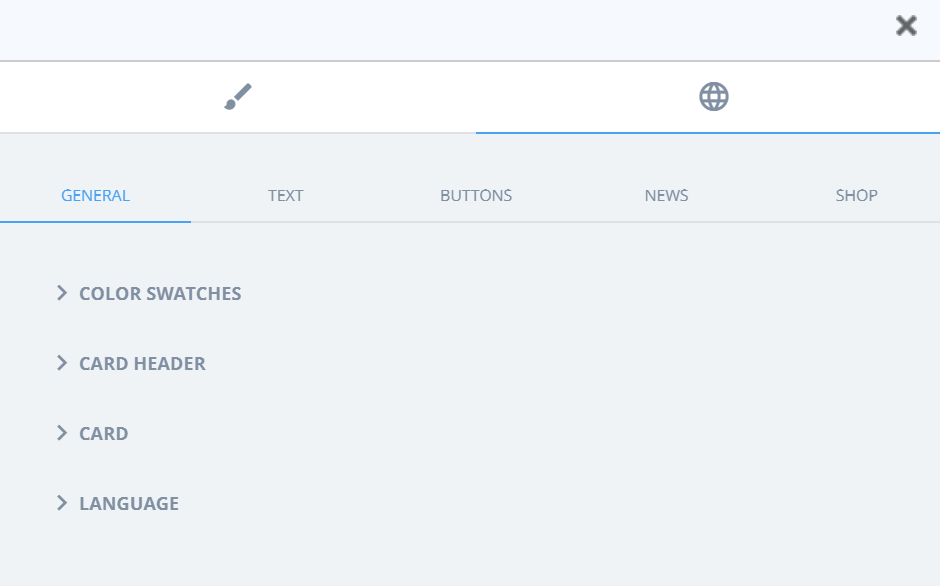 - In dit tabblad kun je de globale lettertypes, kleuren en andere designinstellingen aanpassen